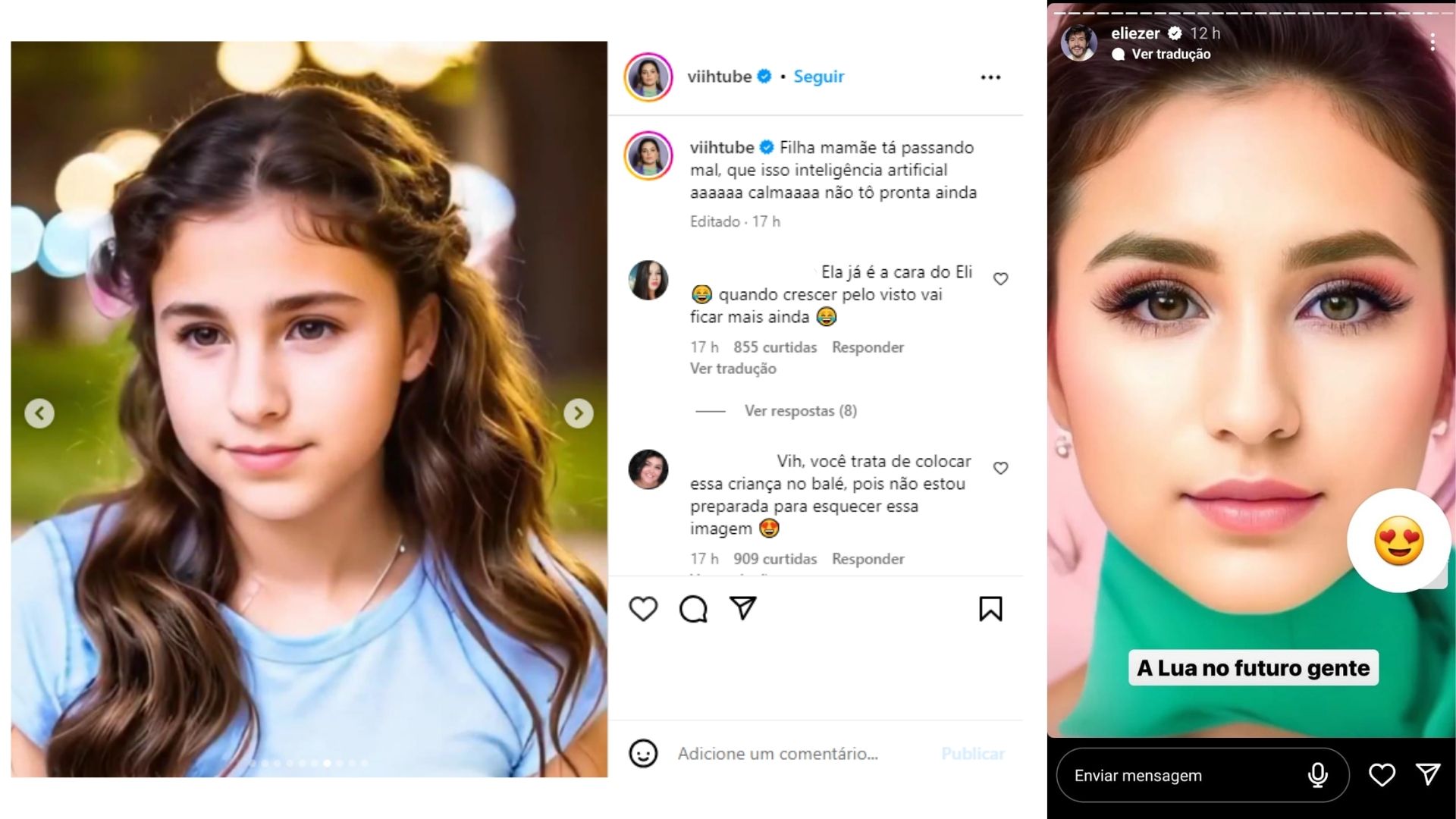 Alguns comentários de seguidores brincam dizendo que a menina ficou ainda mais parecida com o pai Eliezer.