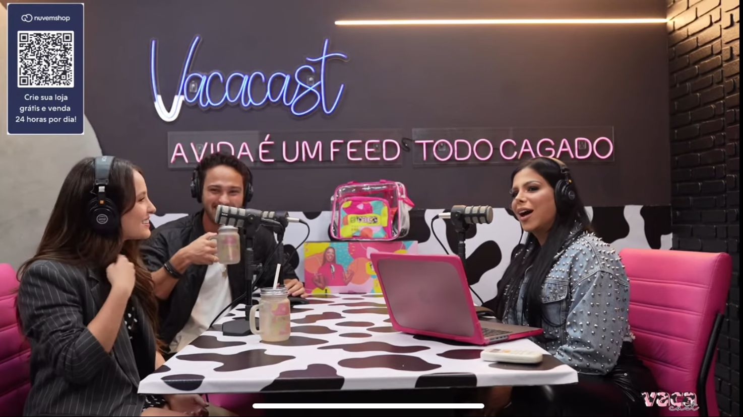 Larissa Manoela e André Luiz Frambach participaram do podcast de Evelyn Regly – Foto: Reprodução/Youtube/Vaca Cast