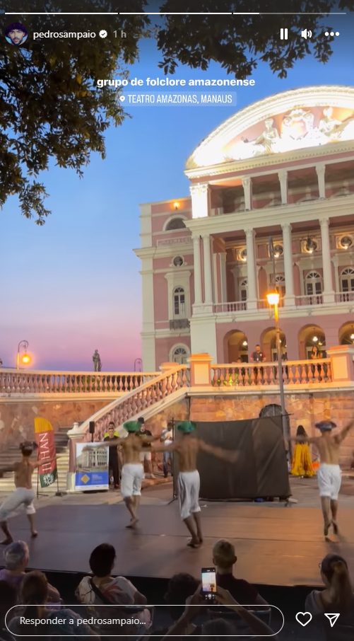 Em vídeo, que circula nas redes sociais, o artista aparece assistindo uma performance artística em frente ao Teatro Amazonas.