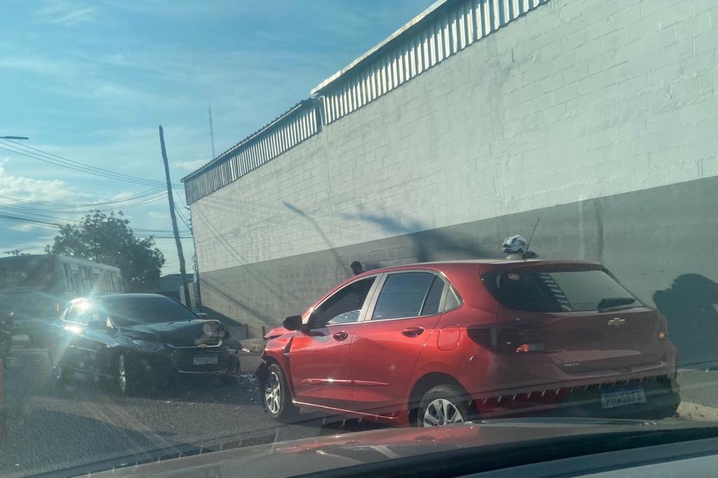 A parte da frente dos carros ficou totalmente amassada. Os veículos permaneceram no local até a chegada do guincho.