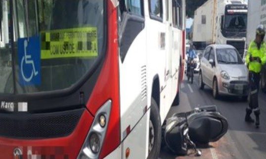 Segundo testemunhas, o condutor da moto acabou sendo atingido pelo coletivo e o caminhão desviou e acabou batendo em um muro.