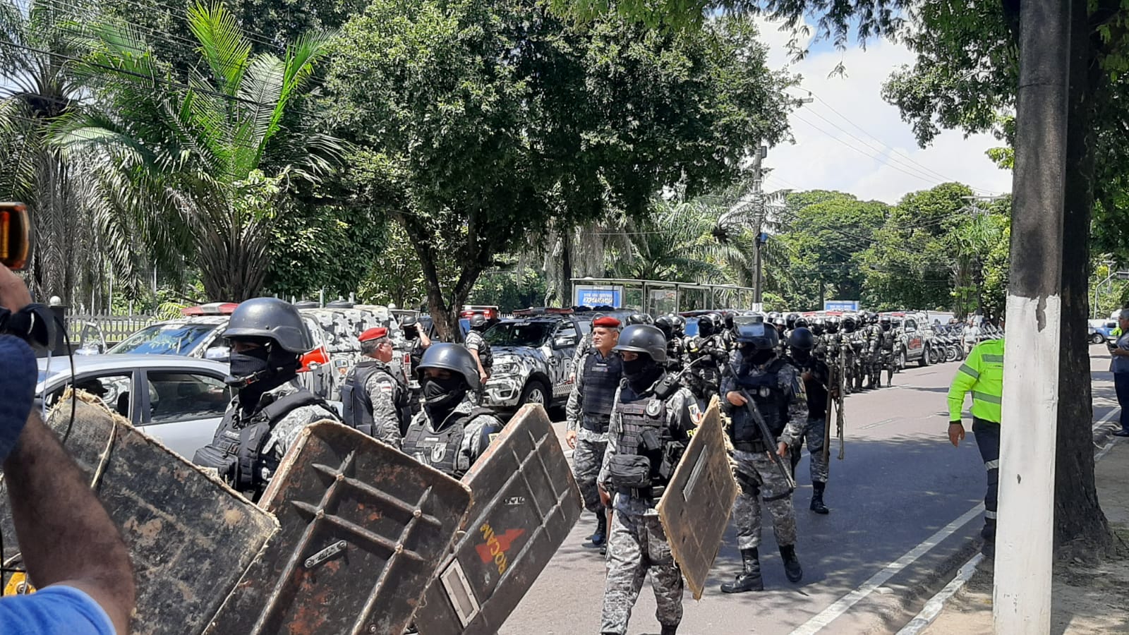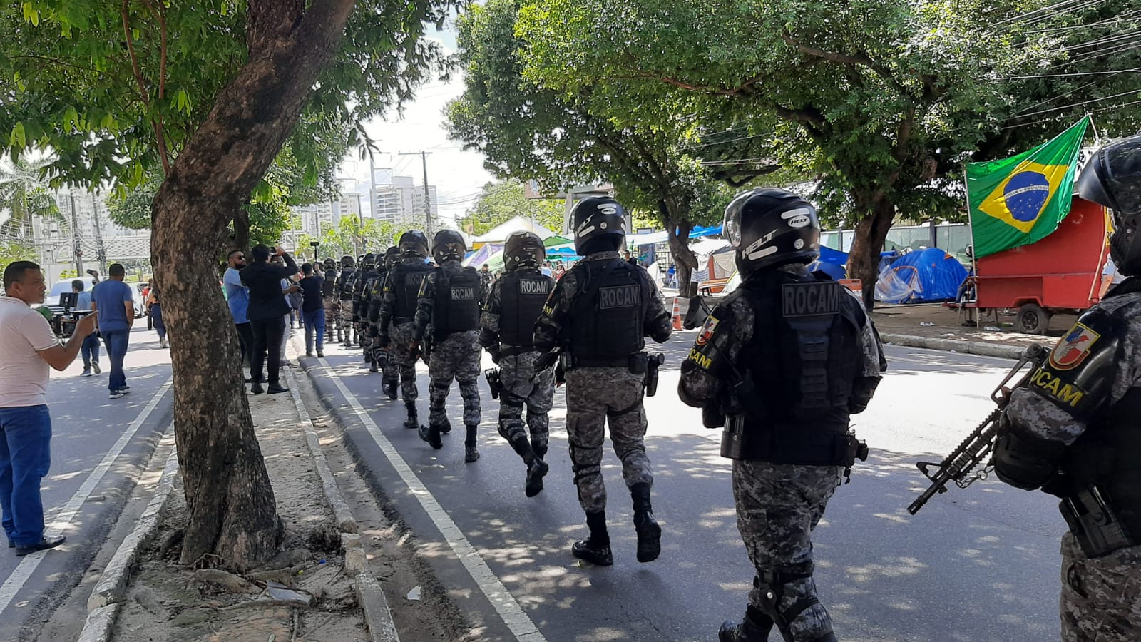 Equipes de segurança do Amazonas começaram, por volta das 11h20 desta segunda-feira (9), a retirada de manifestantes bolsonarista de frente do Comando Militar da Amazônia (CMA), na Zona Oeste de Manaus.