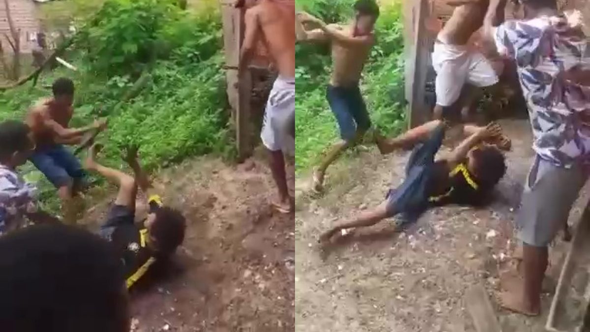 Antes de ser morto por “China”, Oney Rodrigues de Oliveira foi espancado pelo “tribunal do crime’”. As imagens mostram Ney apanhando com pauladas desferidas por três homens. De acordo com suspeitas, ele estaria roubando na região.