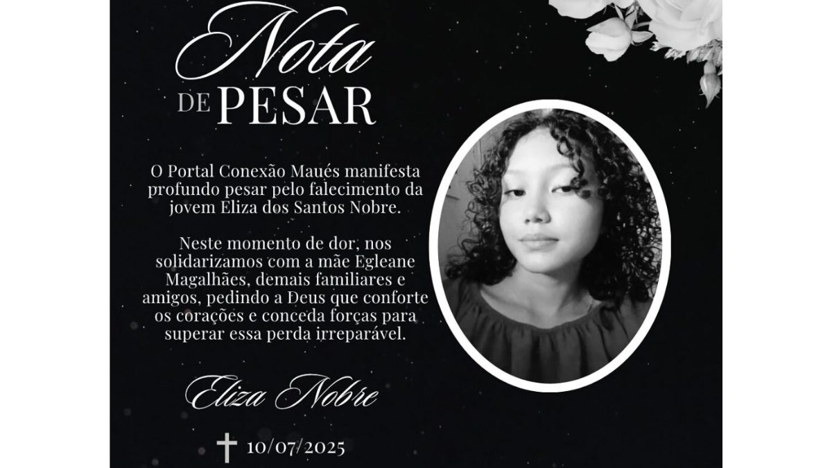 A jovem Eliza dos Santos Nobre, de 17 anos, morreu nesta quinta-feira (10) após ser baleada na cabeça no município de Maués, no interior do Amazonas.