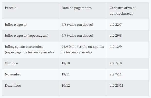 O prazo para o envio dos dados para quem quiser receber a parcela de novembro passou do dia 14 para o dia 7 do mesmo mês.