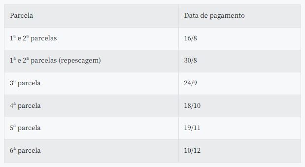 A parcela de novembro será paga no dia 19, e a de dezembro no dia 10.