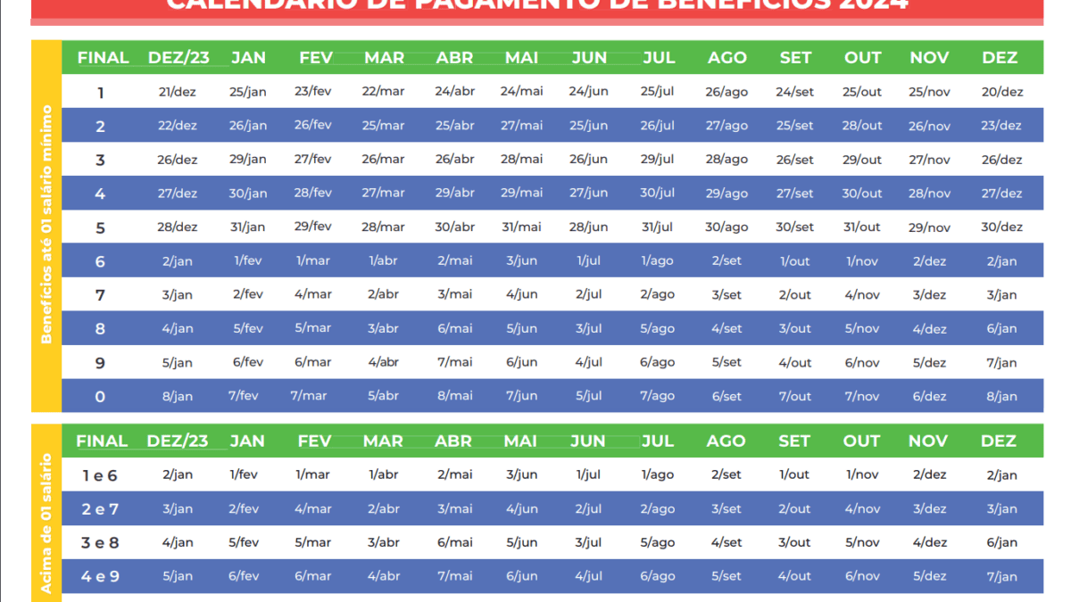 Calendário completo do INSS de 2024