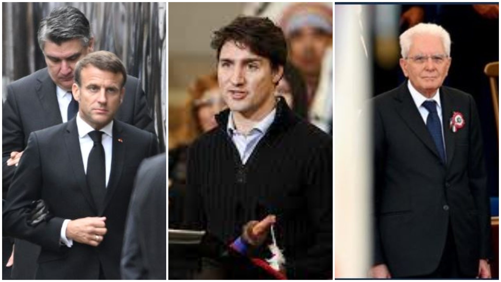 Reprodução / Twitter/ @Na Mira do Repórter./Emmanuel Macron / Justin Trudeau/ Sergio Mattarella