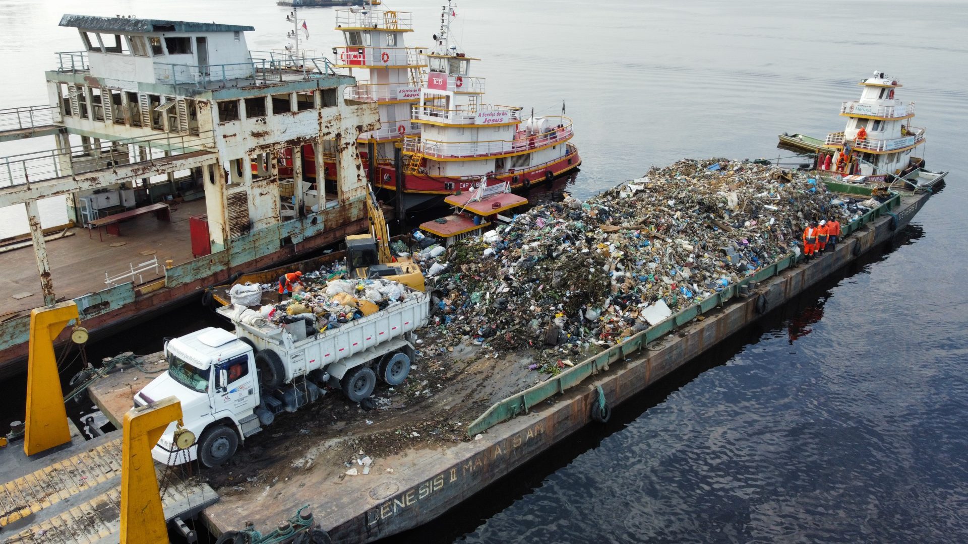 + Em seis meses, mais de 6,7 mil toneladas de lixo já foram retiradas do Rio Negro, em Manaus