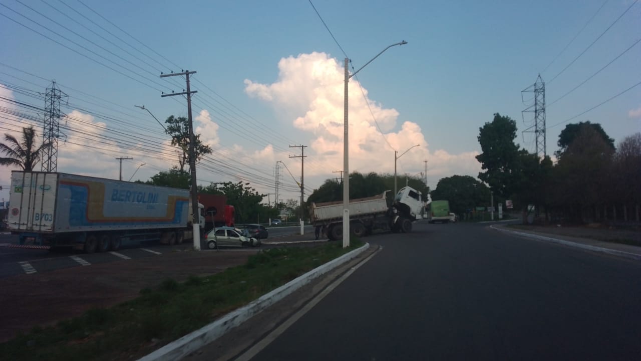 Segundo informações preliminares, o veículo modelo Palio, trafegava na via sentido bairro Ceasa quando atingiu a traseira do caminhão que fazia o retorno no local.