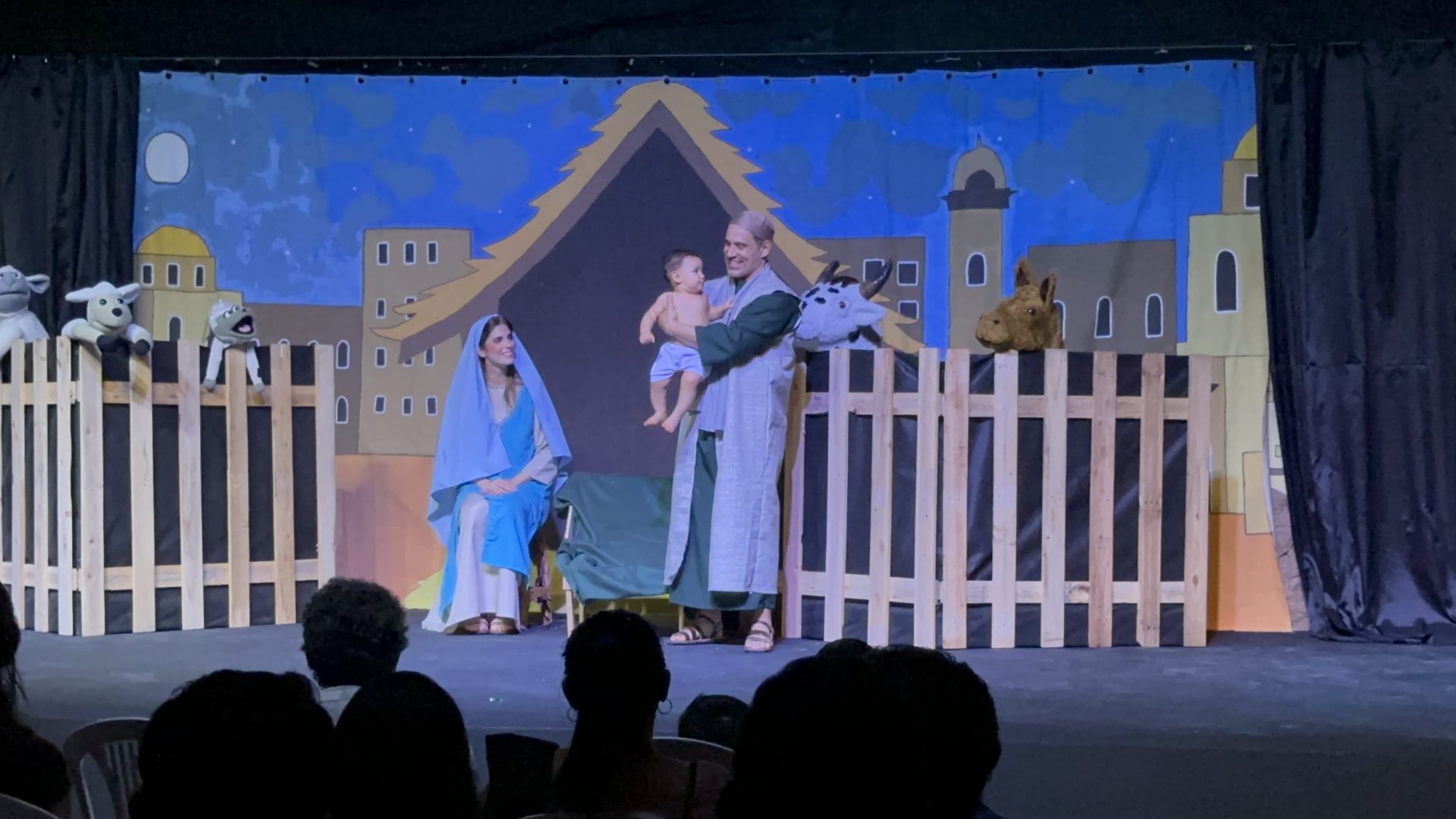 Famílias inteiras estão juntas no palco, como os personagens principais Amanda, Tony e Júnior; dos que fazem o papel de José e Maria; e, também, dos que fazem a família de Jesus.