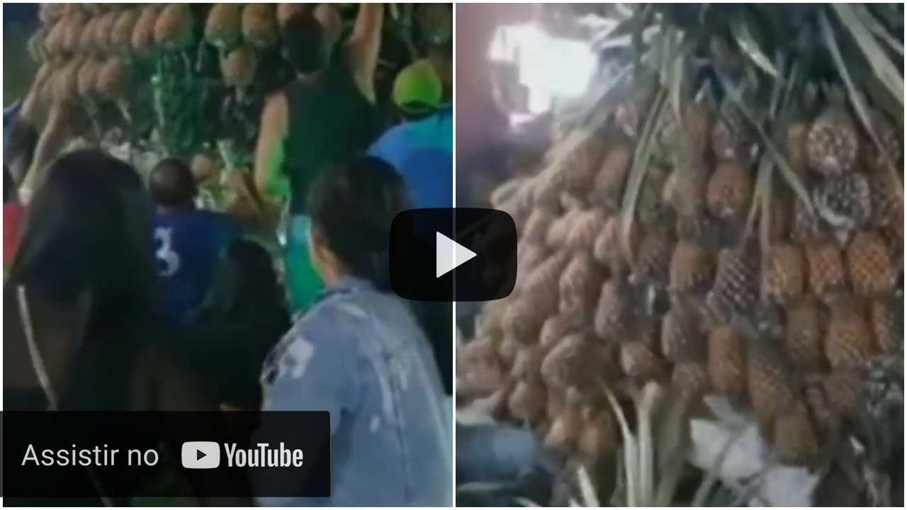 Na madrugada desta quinta-feira (13), uma escultura gigante formada por abacaxis desabou durante uma festa em Pombos, na Zona da Mata Sul de Pernambuco.