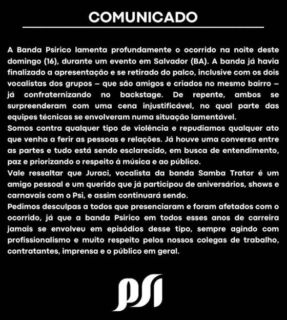 A banda Psirico se pronunciou e lamentou a confusão.