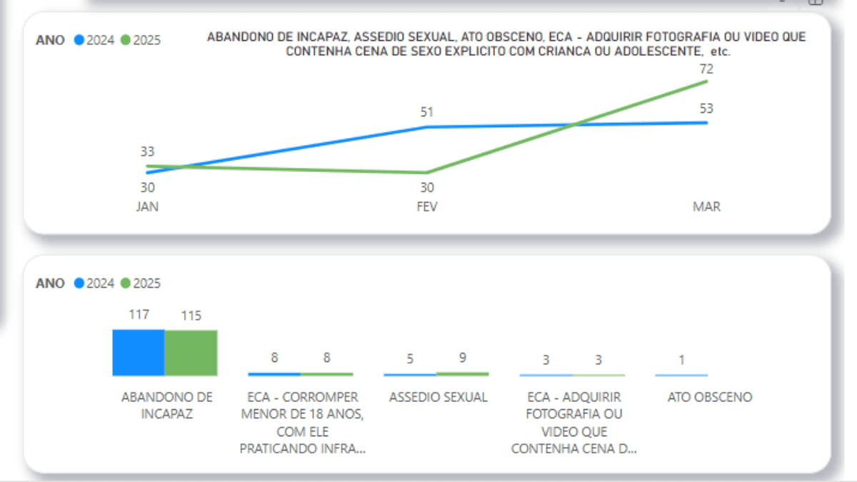 Em Manaus ocorreram 106 das mortes, sendo 104 por arma de fogo. No entanto, crimes contra crianças e adolescentes dispararam: de 30 em fevereiro para 72 em março, alta de 140%, com 52 ocorrências no interior.
