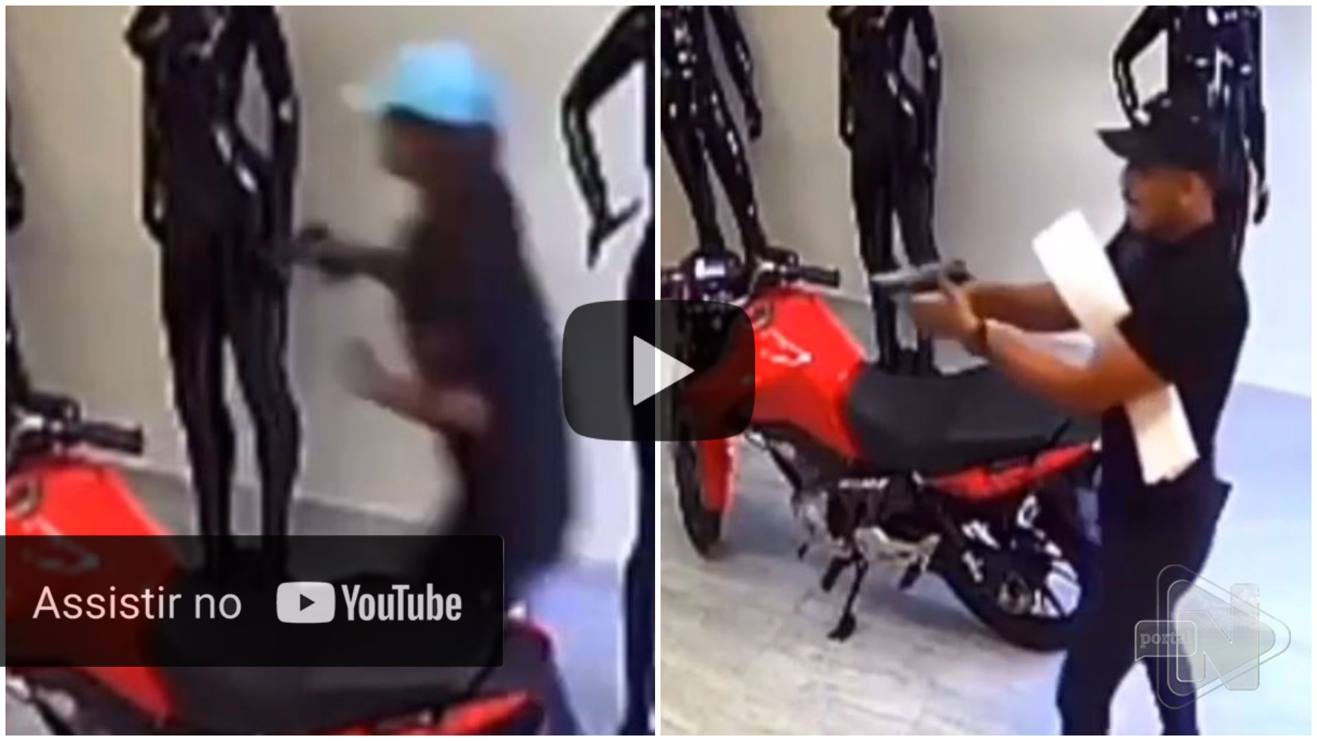 Imagens de câmeras de segurança mostraram o momento em que dois homens aparecem invadindo o local com a presença de clientes do estabelecimento.