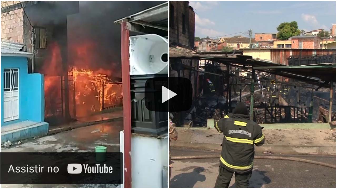 Fogo destrói casas de madeira na Zona Sul de Manaus. Incêndio pode ter sido provocado por crianças que planejavam cozinhar.