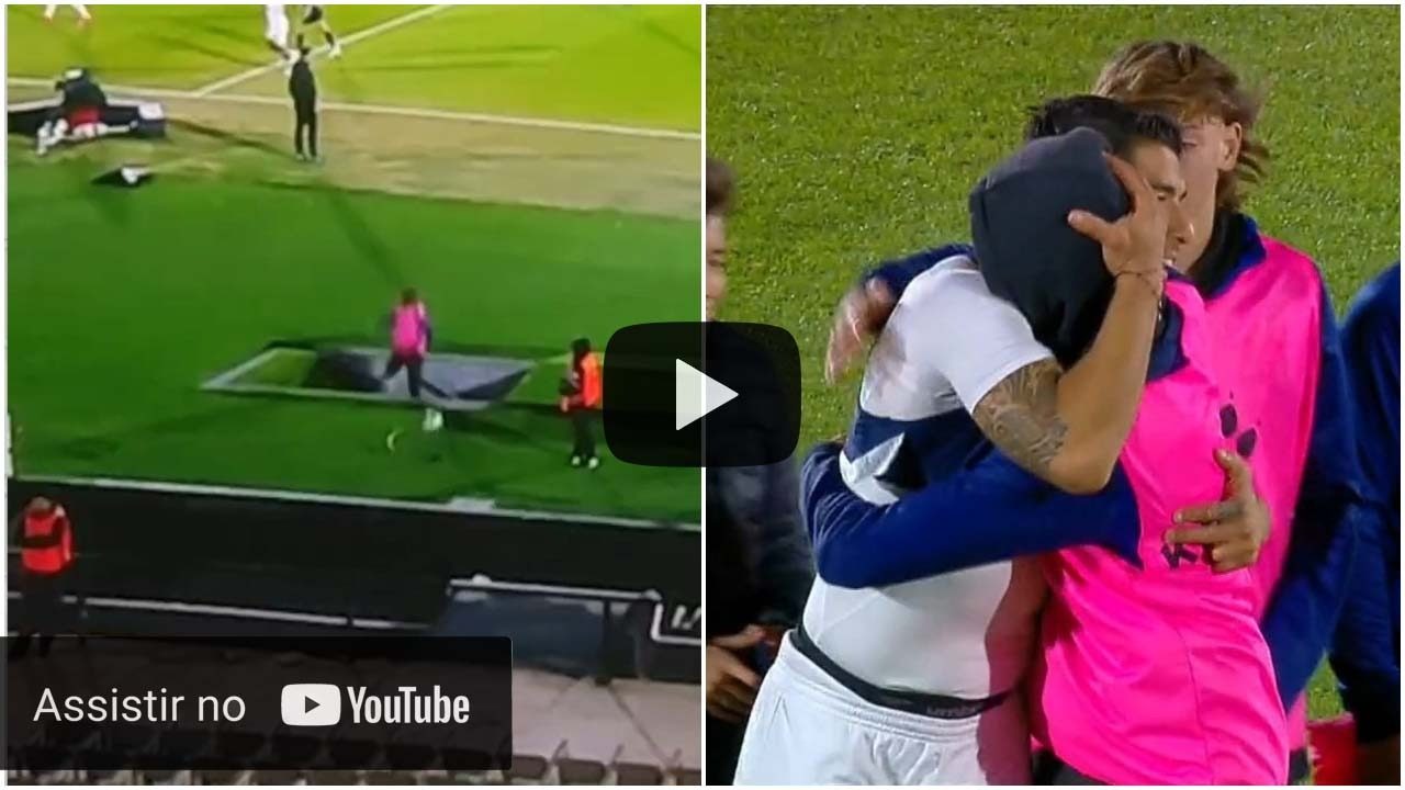 Em vídeos compartilhado nas redes sociais, mostra o momento em que o gandula tenta pegar a bola e caí no túnel de acesso ao vestiário.